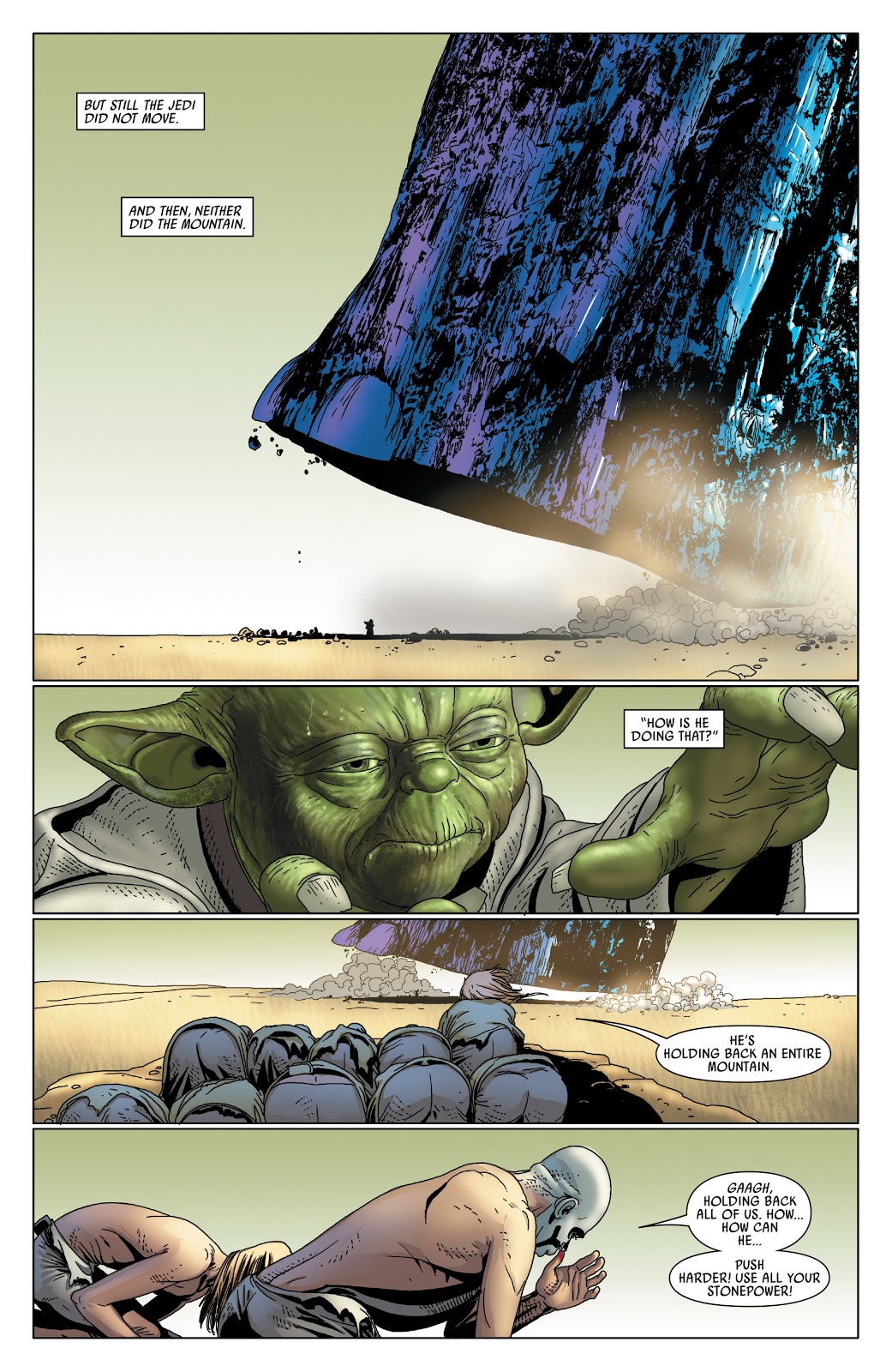 For Star Wars, Legends does have many cases of cosmic level scaling for AP, but in terms of information that’s just in the Disney canon that can get a bit more questionable. But there are a couple notable feats for them that I do feel are solid enough to include. The most solid of these comes from The High Republic: Light of the Jedi, a novel which is part of the canon. In this novel, some space debris was threatening to destroy a moon, which led to a group of Jedi using the force to slow it. The calc here was in regards to the original 4 which aimed to stop it, and while they weren’t able to completely halt it, they were explicitly able to slow it significantly. This would mean they had to be explicitly countering the kinetic energy of the debris, and as such they would be able to scale to its energy. This also isn’t really something you can write off as an outlier, as not only is it a major plot point and the ultimate conflict of the book, it’s also explicitly portrayed as the extreme limit of their strength. As seen in how they ultimately stopped the debris by calling upon various Jedi throughout the galaxy, some of which straight up died from the effort. The other major point against this being an outlier is that it’s hardly the only time Canon Jedi have been shown to operate on a cosmic scale. In the novel Aftermath, which is also fully in the bounds of the canon, it’s mentioned that in the past several Jedi had banded together to destroy a comet that was said to be able to destroy worlds. While this feat is practically impossible to lock down numbers for, given its vague nature, it also pretty clearly establishes that Jedi are able to work at a cosmic scale altogether, making the idea of this kind of feat being consistent far from unbelievable.